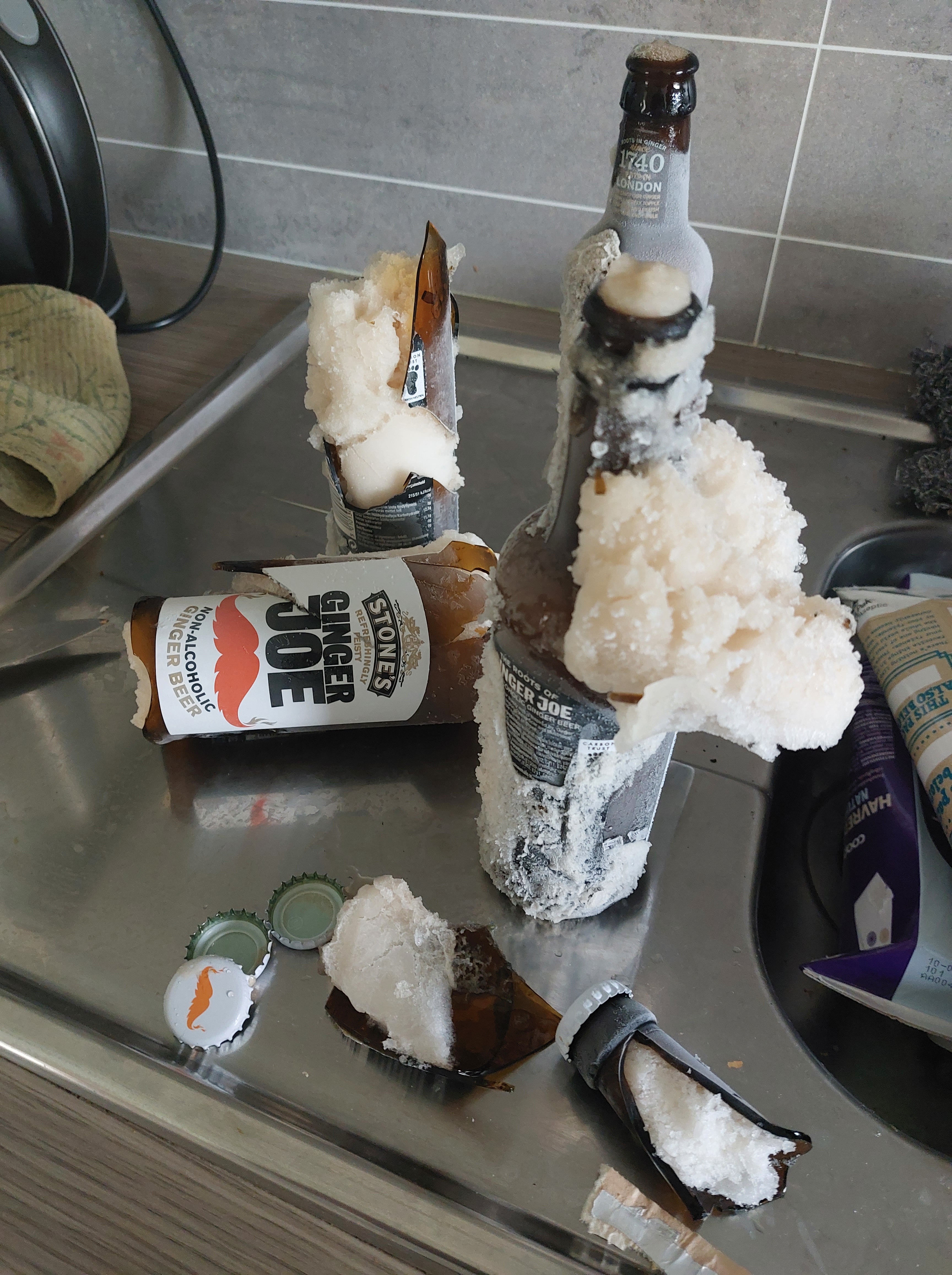 Diese Flaschen sind aber nicht etwa einfach auf dem Balkom geblieben, nein, dafür braucht man sogar hier ein Gefrierfach! Denn – es ist Sommer! Auch wenn es nur 15° C sind, beneide ich euch nicht, die ihr in heißen Städten des Südens bratet.
