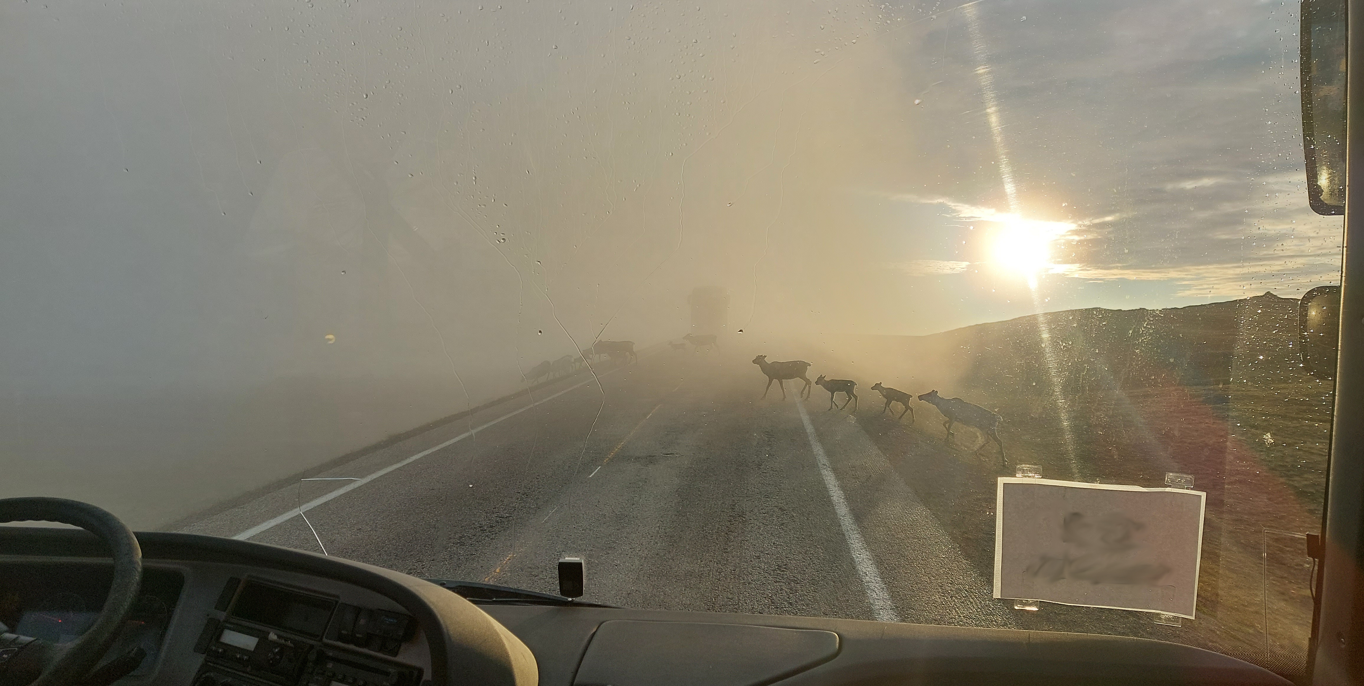 Diese Tiere laufen hier eben frei herum, werden von zehn samischen Familien betreut und scheren sich einen Dreck um Verkehrsregeln!