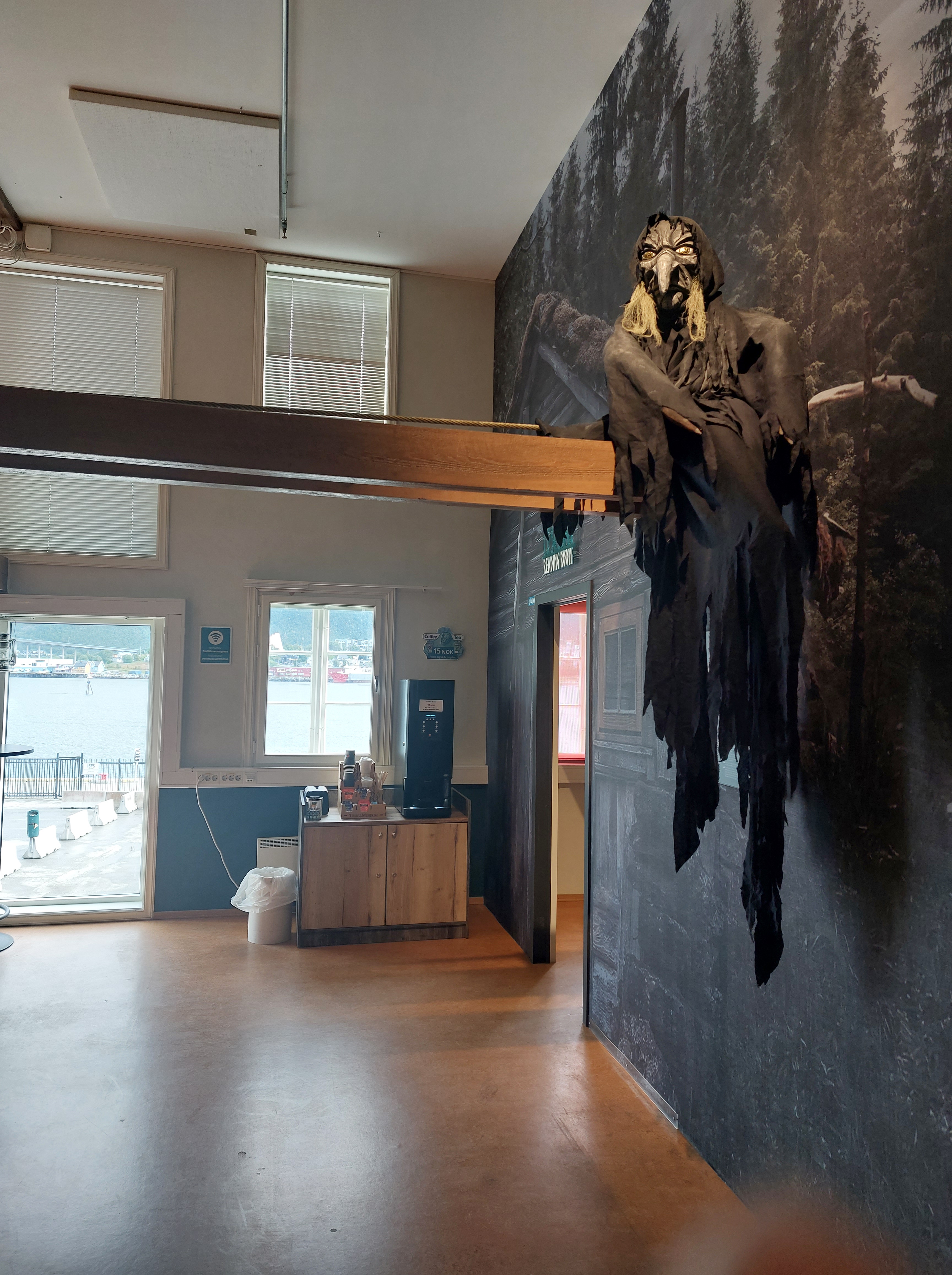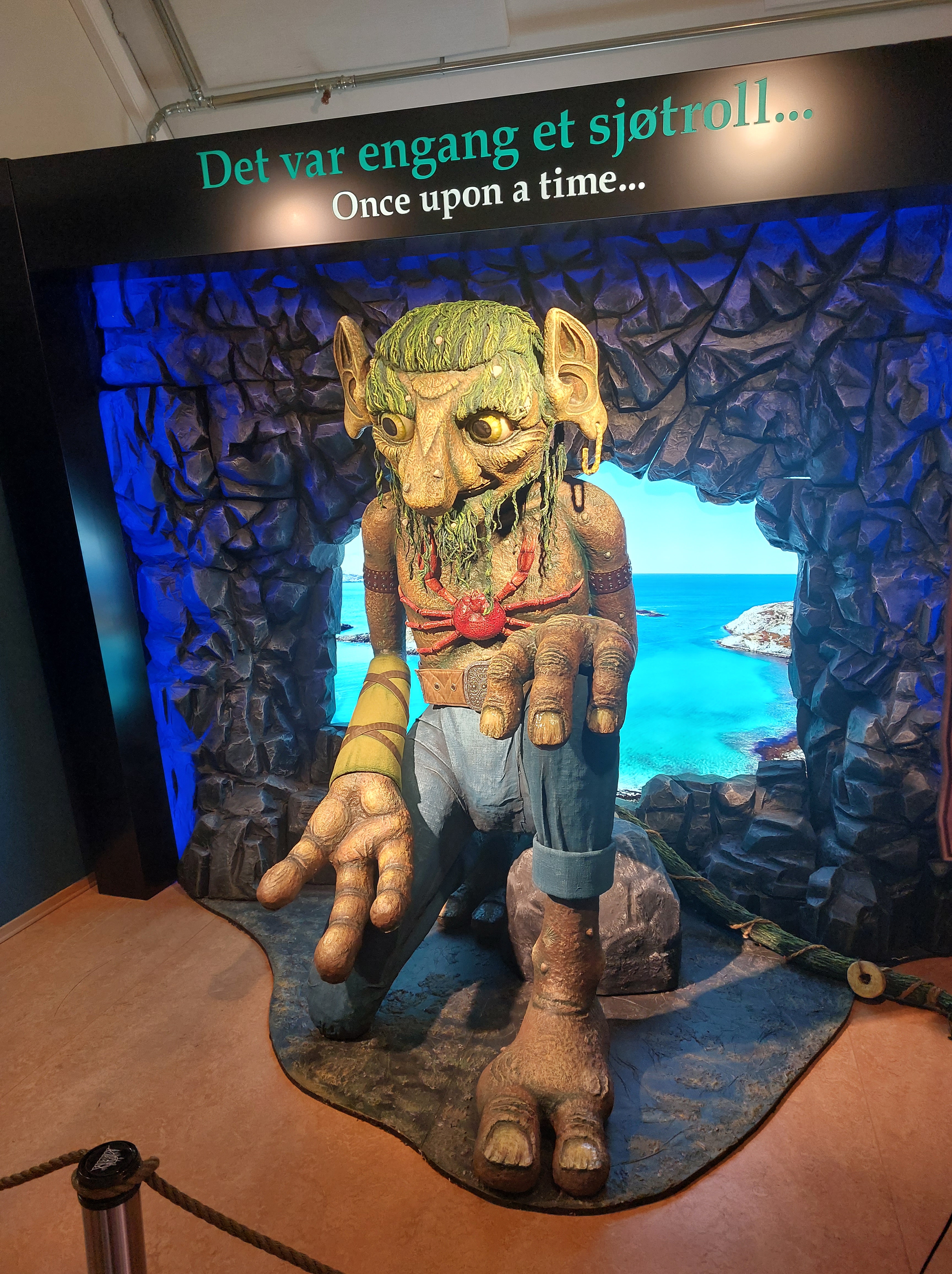 Und dann: ins Troll-Museum! Endlich hat mal ein Kulturmanager eine gute Idee gehabt! Da wimmelt es von Huldra, Seetroll, Draugen und eben dem Trollkönig, der von Edvard Grieg verewigt worde: bom-bom-bom-bom-bombombom—bombombom—bombombom usw. Schön auch, die Verbindung zum Wikingerglauben und den Sami zu haben. Wieder einmal zeigt sich, dass sich hier im Norden die Mythologien vermischen.