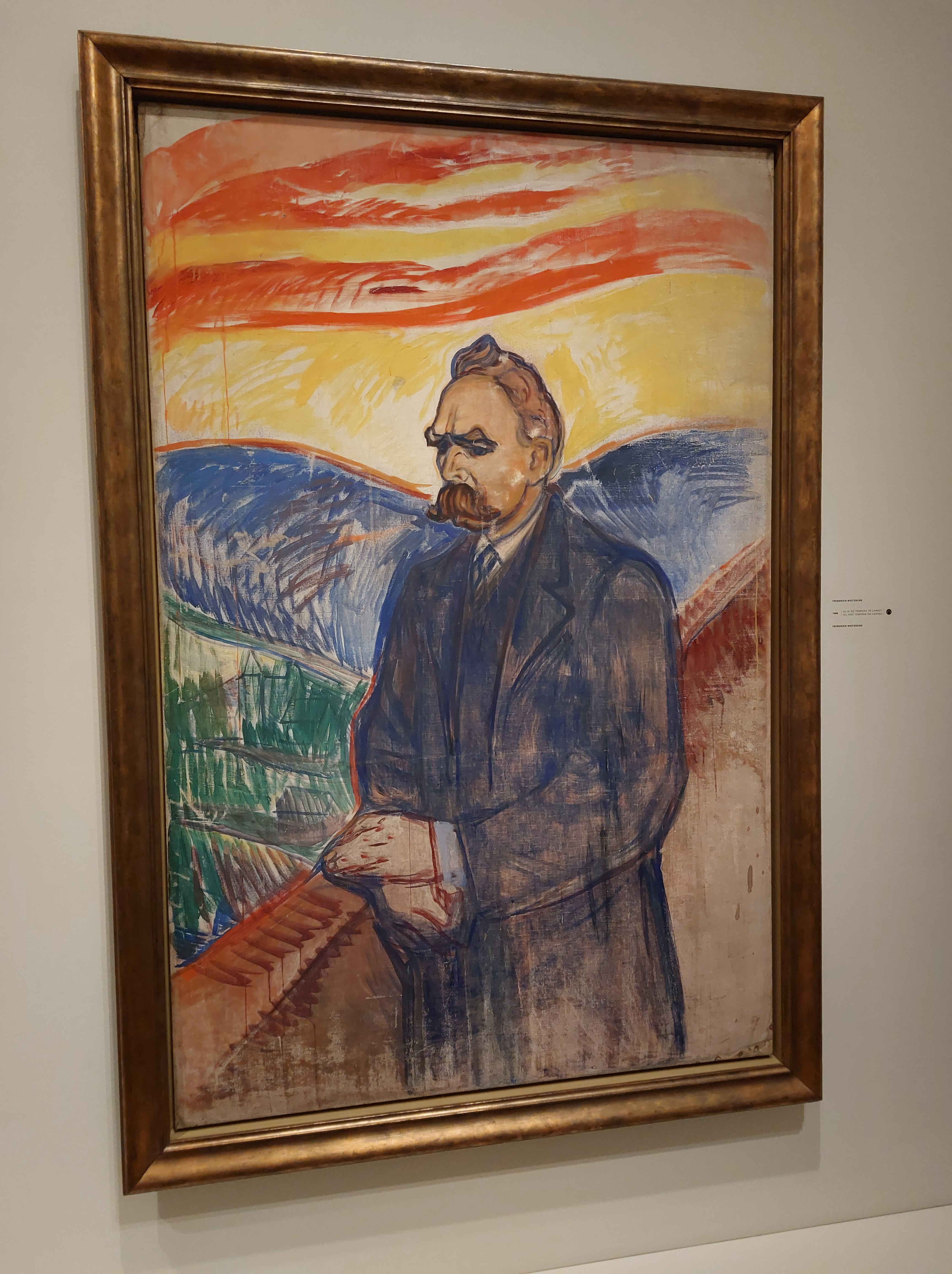 Dann, einen Flug später und einen halben Koffer leichter, den ich in den Papierkorb am Tromsøer Flughafen zwängen musste, das „Manhattan des Nordens“ (K. Lauer): Oslo! Hier erlebe ich, dass meine Furcht vor Menschen nicht von ungefähr (= von Ingvar Ambjørnsen) kommt: Sie ist genetisch veranlagt! Ich bin ein halber Norweger und Norwegen ist das Land von Edvard Munch (wieso heißen eigentlich alle Berühmten hier [außer mir] Edvard?). Und der ist hier allgegenwärtig und hat wirklich was gegen Menschen gehabt (s. Bilder). Übrigens hat er auch viel gesoffen, das liegt also wohl auch in den Genen… aber lassen wir das.
