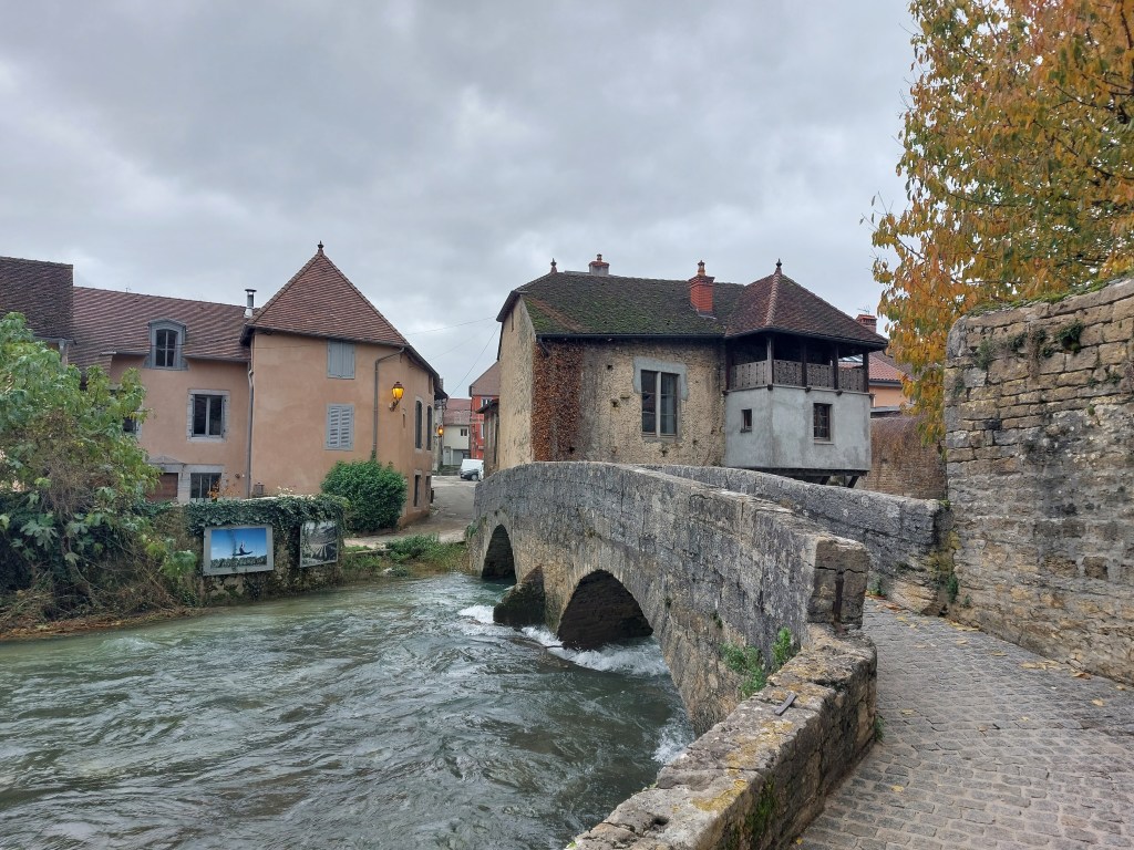 Jedenfalls habe ich in dem Tal bei Arbois wirklich die Gewissheit: Hier bin ich im Jura. Auch dies ein Wort, das ich aus meiner Kindheit kenne, da es im gleichnamigen Erdzeitalter schon Dinosaurier gab.
