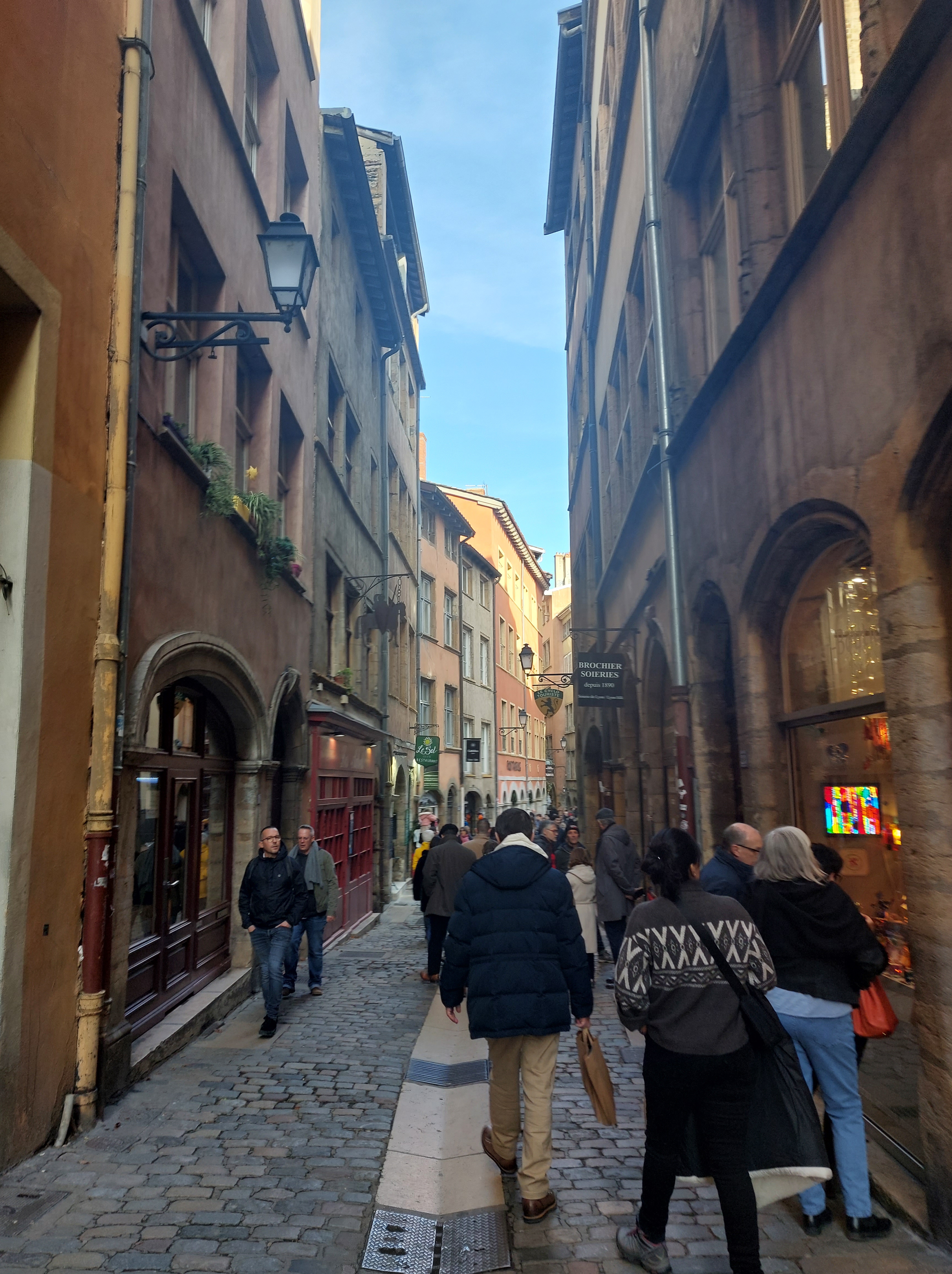 Aber die Welt dreht sich weiter, und so auch ich. Schnitt. Kontrast. Die Filmrolle spult zur eingangs angedeuteten Stadt: Lyon! Drittgrößte Stadt Frankreichs, ehemalige Hauptstadt der römischen Provinz Galliens, zweitteuerste Stadt des Landes, kulinarischer Kulminationspunkt, Geburtsstätte des Films… Vergessen die Wälder und Wasserfälle, hier gibt es nur Häuserschluchten und steile Straßen. Es ist eng, es ist laut und – auch hier scheint die Sonne! Für mich regengewöhnten Juristen (!) ist es schwer, dies nicht als lokale Eigenart zu sehen. Aber im Ernst: Irgendwie ist man hier schon ein bisschen mehr im Süden.