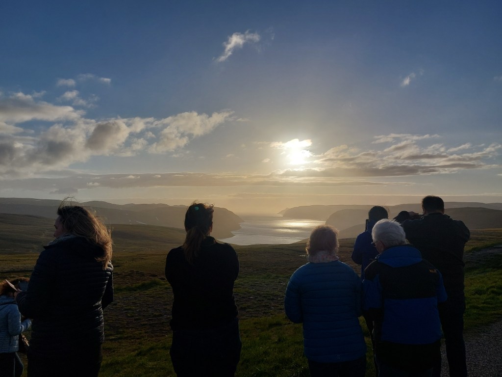 Das Wort „wheel“ im Englischen kommt von „hvale“, was ein altnorwegisches Wort für das Drehen ist, das die Wale im Wasser vollführen. Ich kriege auch nach der ersten Woche einen Drehwurm ob all der Eindrücke und Touristen hier am Nordkap. Am zweiten Tag werde ich gleich in einen Shuttle-Bus gesteckt, mit Ulf viermal zum Kap und fünf Male hinunter. Am Ende haben wir die Taschen voller Geld und nur warme Gedanken gegenüber diesen herzallerliebsten amerikanischen Touristen. Ich bin wieder im Spiel. Geholfen hat natürlich auch, dass Ulf im Bus gesungen hat – er hat den Joik angestimmt, mit dem Sverre Kjelsberg und Mattis Hætta 1980 den „Melodi Grand Prix“ gewonnen haben, also die norwegische Ausgabe des Eurovision Song Contest.