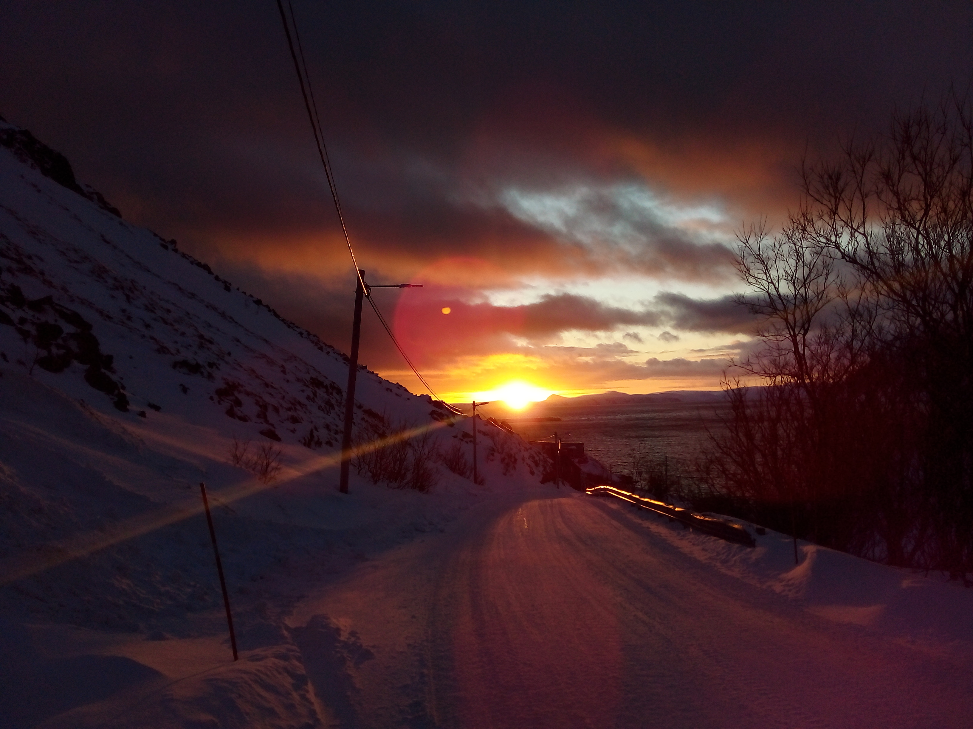 Ende Januar sah ich dann die Sonne das erste Mal wieder „live“, und ab Februar geht es dann ganz fix: Die Strahldauer des wärmespendenden Himmelskörpers ändert sich um ca. 15 Minuten pro Tag! Wir fahren jeden Tag das Nordkap rauf und runter, und ab und zu in die Fischerdörfer.