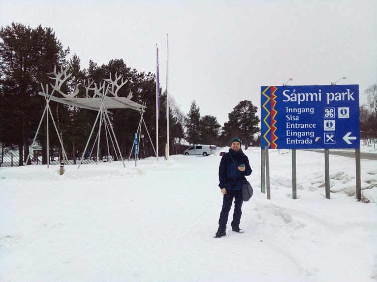 Und noch einmal zurück zu den Samen: Als Abschluss meies arktischen Abenteuers reise ich nach Karasjok, das als eines der Hauptdörfer der norwegischen Urbevölkerung gilt. Dort steht auch das Samenparlament (das wir nicht besuchen), das wichtige Entscheidungen trifft, die besonders in Finnmark (wo auch das Nordkap liegt) zu spüren sind. Ich gehe das erste Mal über einen richtigen gefrorenen Fluss, der dort als Autobahn für die Schneescooter dient.